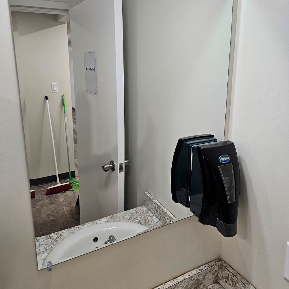 Thorough cleaning and deep disinfection of restrooms and kitchen areas, including restocking of essential hygiene supplies when required.